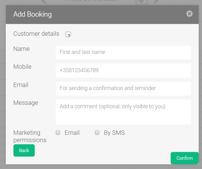 - You can get customer's email and/or mobile number to which the system will send the booking confirmation and a booking reminder
