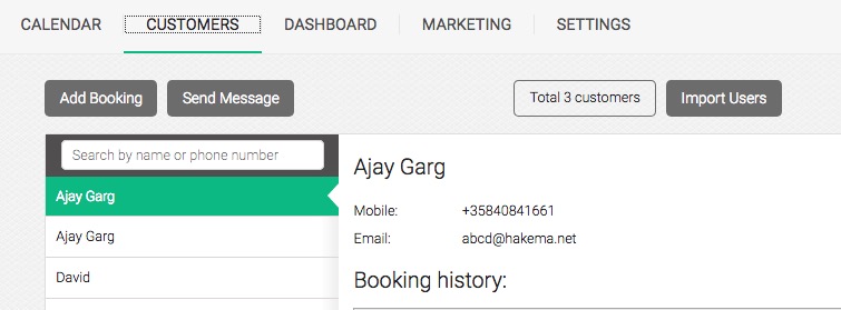 1. Go to Customer Tab and Find a customer (using the link). You will see the customer details. You can use these details and email the customer using an external email program like Gmail, Hotmail etc.