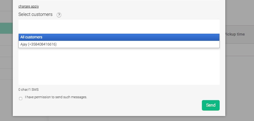 Now select customers to whom you want to send the SMS. You can select one or more customers from the list or select All Customers.